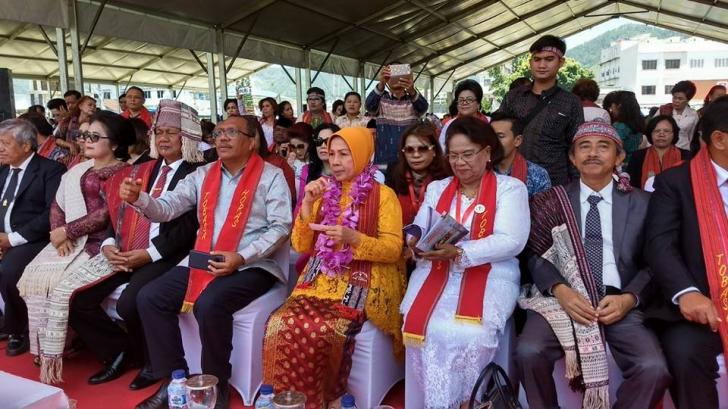 BALIGE – Acara semakin meriah ketika rombongan tiba di Lapangan Sisingamangaraja, Balige. Rombongan disambut meriah ribuan warga dan wisatawan yang memenuhi area acara.